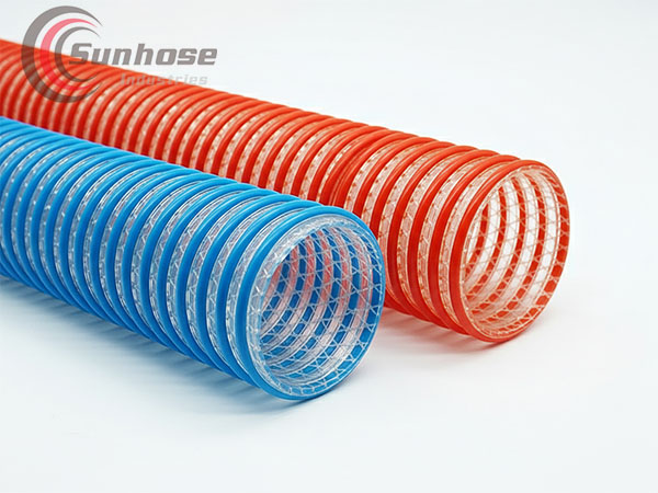 Heavy Duty PVC Fabric Reinforced suction hoses are called by many different names. Such as Spiral Reinforced PVC Suction Hoses, water suction hoses with orange helix, PVC Suction, and discharge hoses, and Orange PVC grit hoses. Heavy Duty fabric reinforced suction hose for fish suction and transfer with a clear visual flow. Also heavy-duty water suction and transfer for rental, construction, and trash pumps. A heavy-duty PVC fabric-reinforced suction hose with a corrugated design is a specialized hose used for suction applications that require durability and strength. This type of hose is commonly used in industries such as agriculture, construction, mining, and wastewater management.